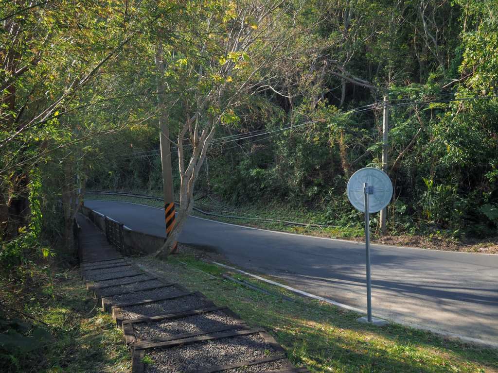 爬完石階後,步道沿著道路向左延伸。