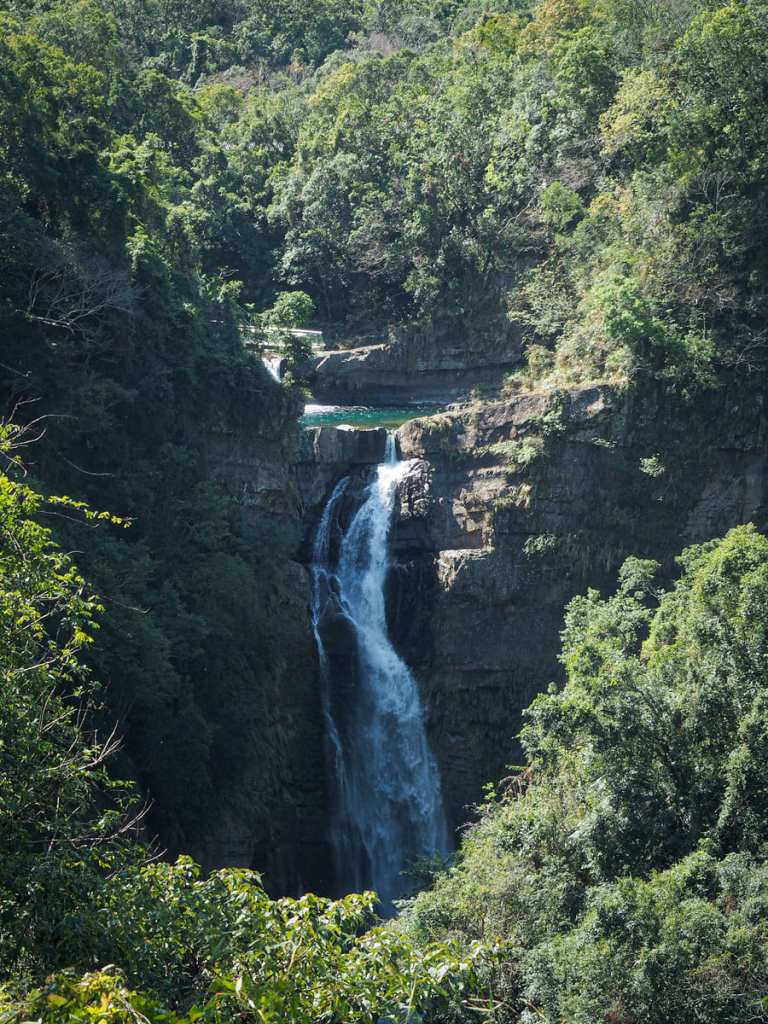 步道終點是一座觀景台,就架在其中一座瀑布的正上方,另一座瀑布也清晰可見。恰巧那天我到達的時機剛剛好,陽光正要升起。我站在那裡,呼吸著清晨山林的氣息,看著光線緩緩越過山脊,將山谷裡的陰影一點一點地驅散。