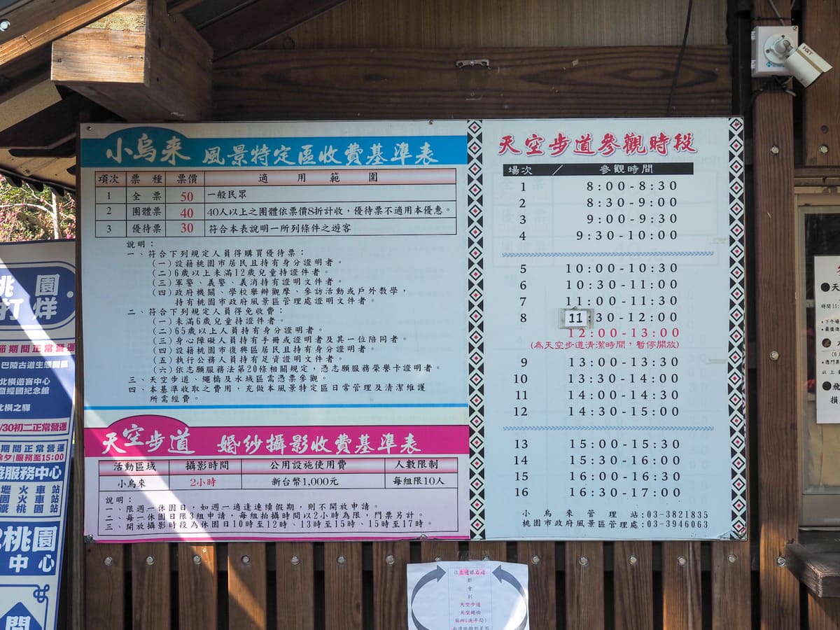 步道引導你走向小烏來售票亭。若想體驗瀑布天空步道或通過繩橋,需購票入場(全票成人票價為新台幣50元),但實際上,不買票也可以完成這趟健行路線。