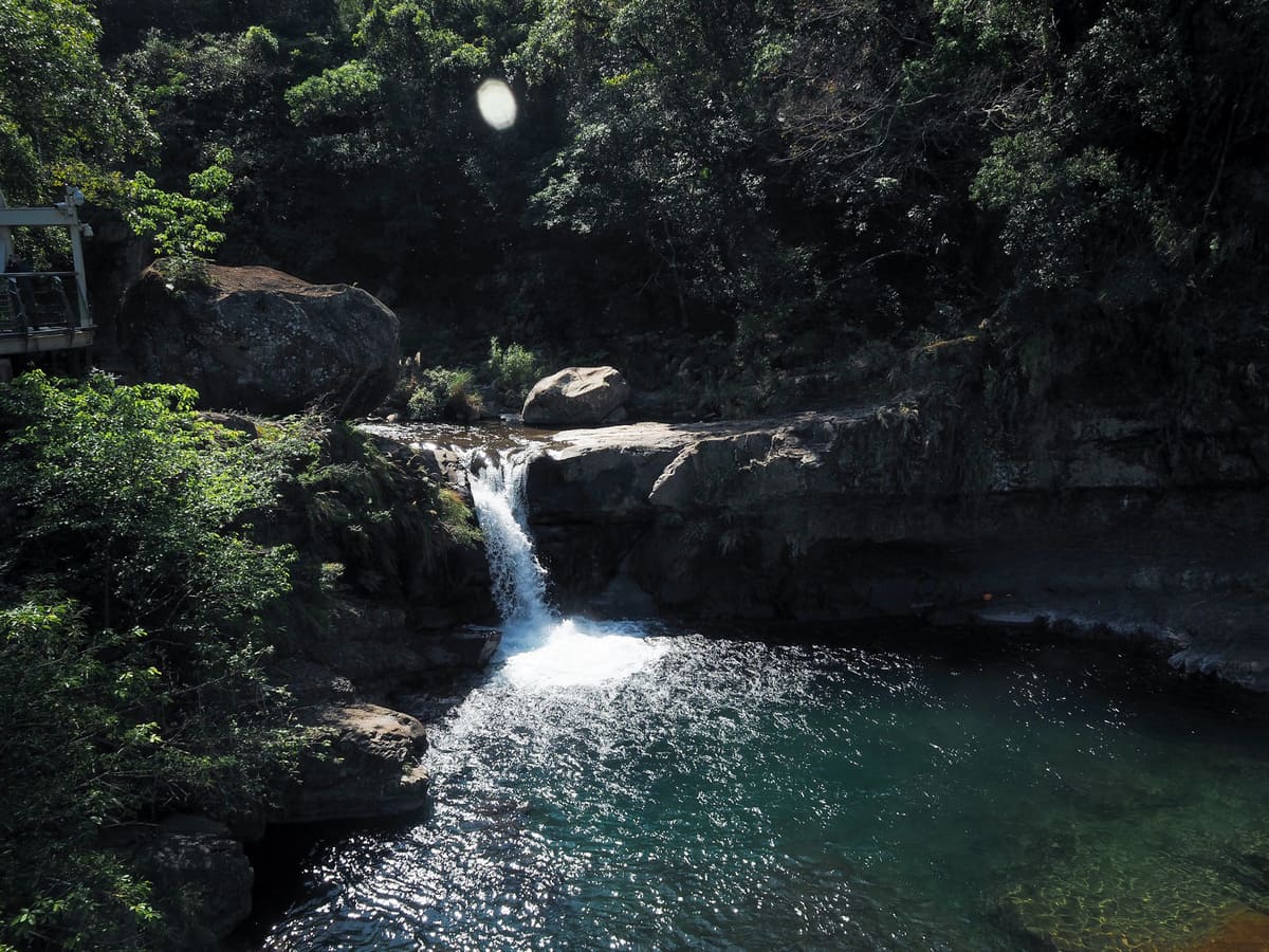原路返回岔路口後,我沿石階而下,穿越區域內景觀較為平實的那座橋。過橋後步道一分為二——兩條路最終會抵達同一個地點,但右側那條路會先帶你前往龍鳳瀑布(即前文提及的兩座瀑布)的觀景台。