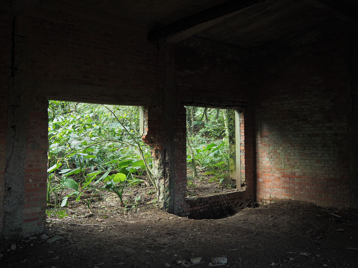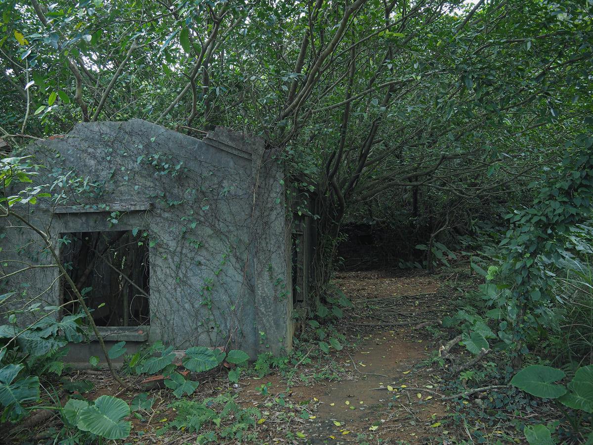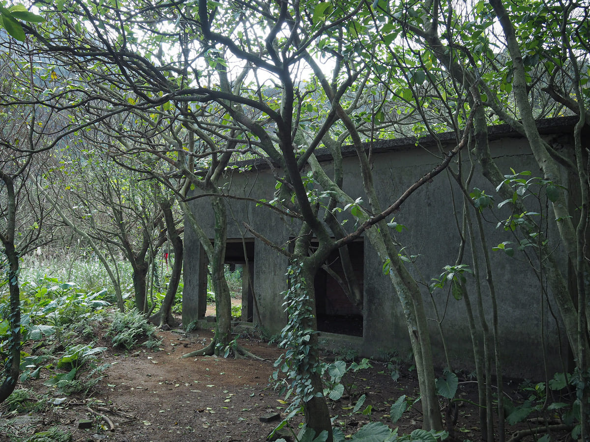A short distance into the trees, the trail passes through a cluster of abandoned buildings. I haven’t been able to find any resources that state definitively what they are, but their proximity to mines and their placement at the lower end of Liukeng Slope Ropeway suggest that they were likely part of the mine’s retinue of administrative facilities.