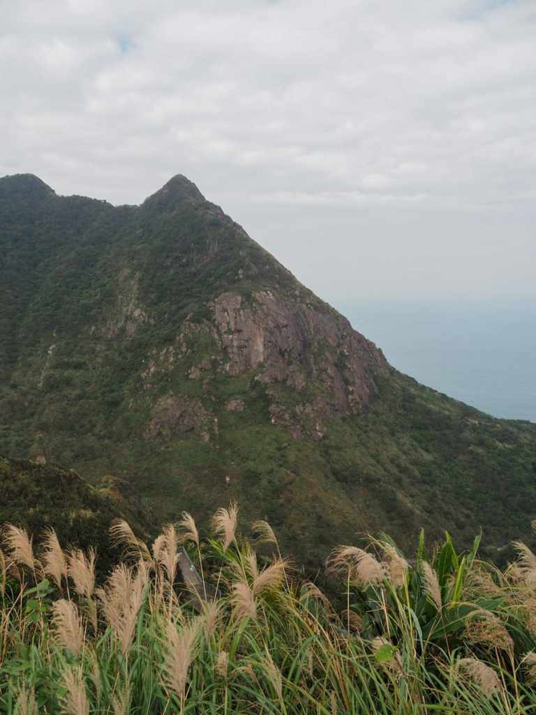 To the left, the dramatic eastern peak of Mount Keelung surges up to join the more rounded hump of the main peak, while to the right, you get a glimpse of some of the higher up sections of the old smelter flues and a tall, thin waterfall.