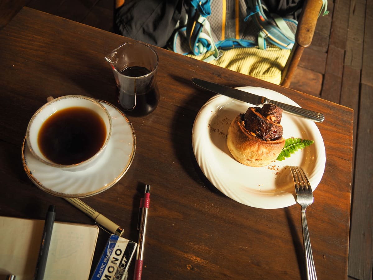 I decided to duck into Take a Walk for a coffee and some cake before heading home and enjoyed a pleasant hour sketching and befriending the shy cat.