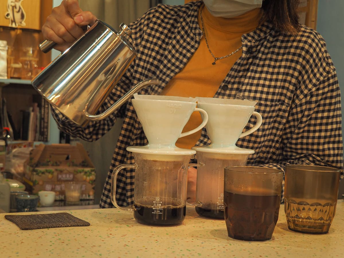 This tiny modern store is one of several coffee shops located on the bustling second floor of Ren’ai Market. It has a few table seats and a handful of bar stools, and when we visited on a rainy weekend, each seat was occupied. Skilled staff can prepare pour-over coffee based on your taste preferences or you can order from the drinks menu. The store also sells a small range of desserts.