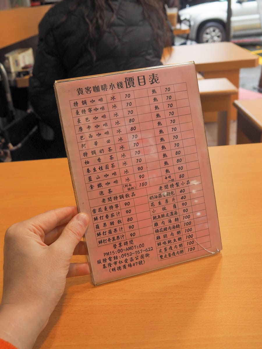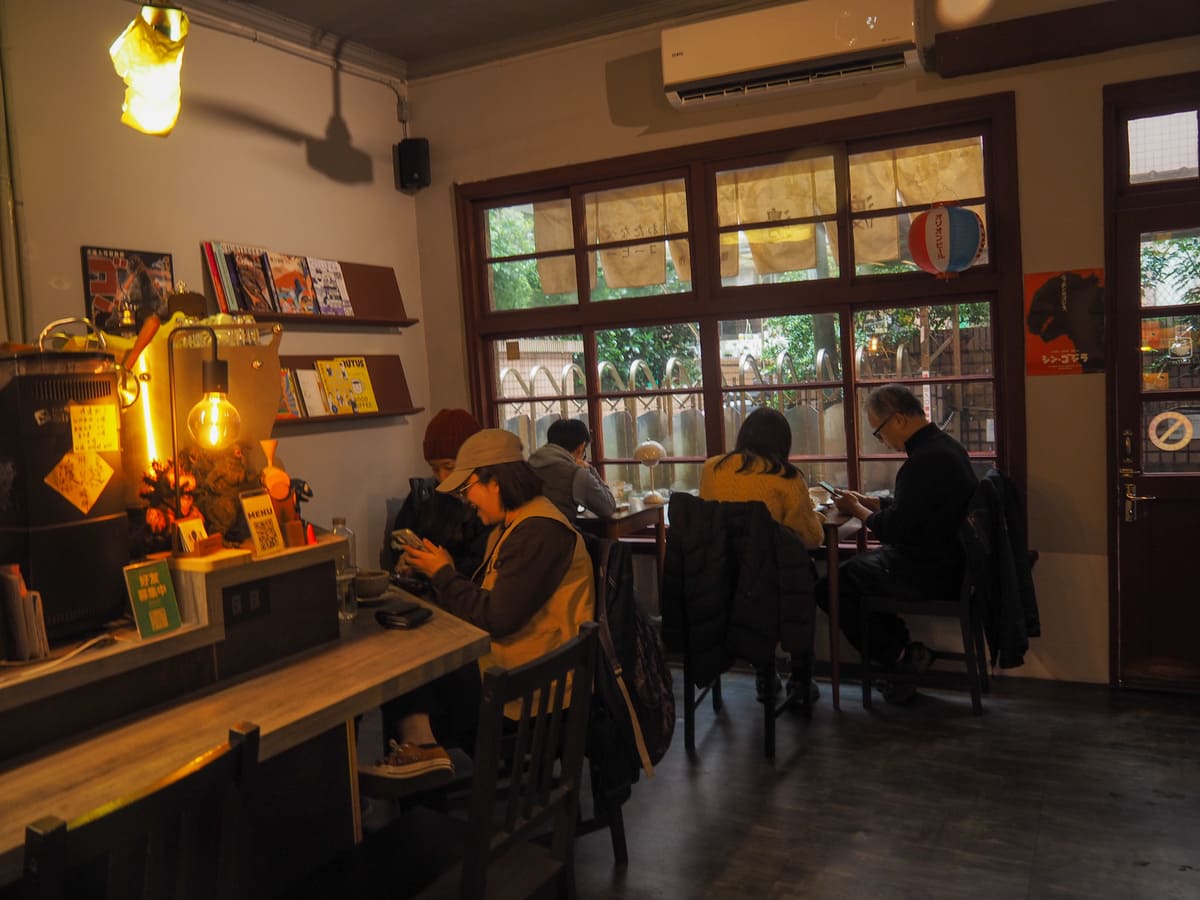 This two-floor café is hidden down a back lane near Keelung Martyr’s Shrine. J-pop and Godzilla posters add a Japanese touch to the ambience and the well-chosen range of tableware feels artfully mismatched. Personally, I think the two window-side tables are the best seats in the house because they allow you to watch the comings and goings on the street outside. We ordered a slice of thick toast with potato salad (very moreish), a dirty coffee (strong, just on the right side of bitterness), and a narcotic coffee (麻藥咖啡, made with some kind of herbs, slightly sweet).