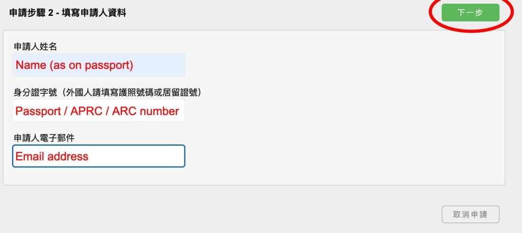 Triple check that all your basic info is OK, then select “遞交申請” to submit your application.