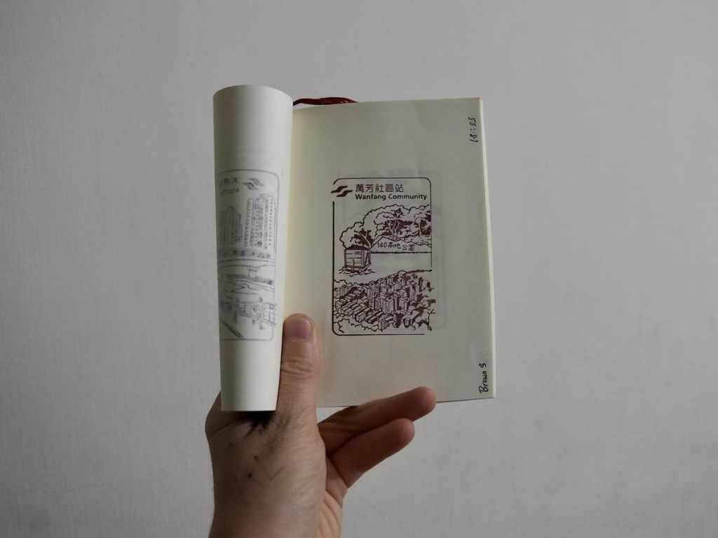 Stamp description: The Wenhu Line’s commemorative stamps are rendered in brown ink and are portrait-oriented rectangles (except for transfer stations, which are black and shaped like a spiky text bubble).