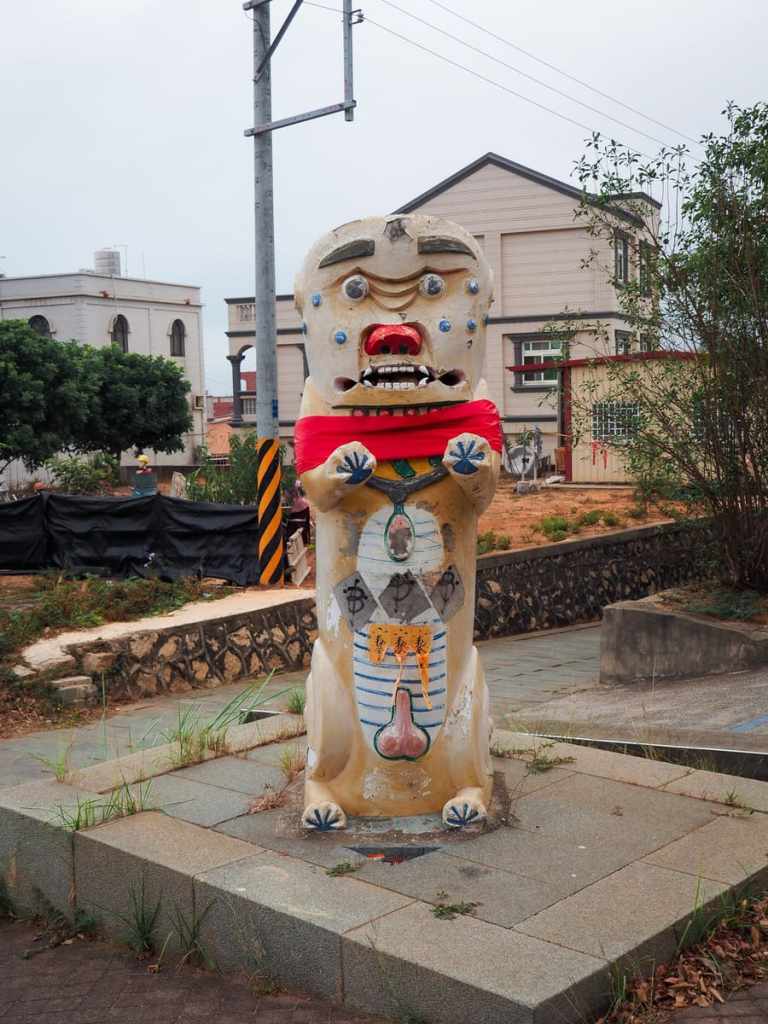The Houtou Village Wind Lion Gods were two of only a handful of deities we encountered in on the small island of Lieyu. If we’d visited just a few months earlier, we’d have had to catch a ferry over, but these days, Little Kinmen is connected to the rest of Kinmen via a long and windy bridge. The taller and newer of the two statues was commissioned after the original was lost or destroyed in World War II. The smaller, older one may or may not be the one that was lost in the war, but it was definitely rediscovered after a period of being lost and enshrined next to its younger brother.