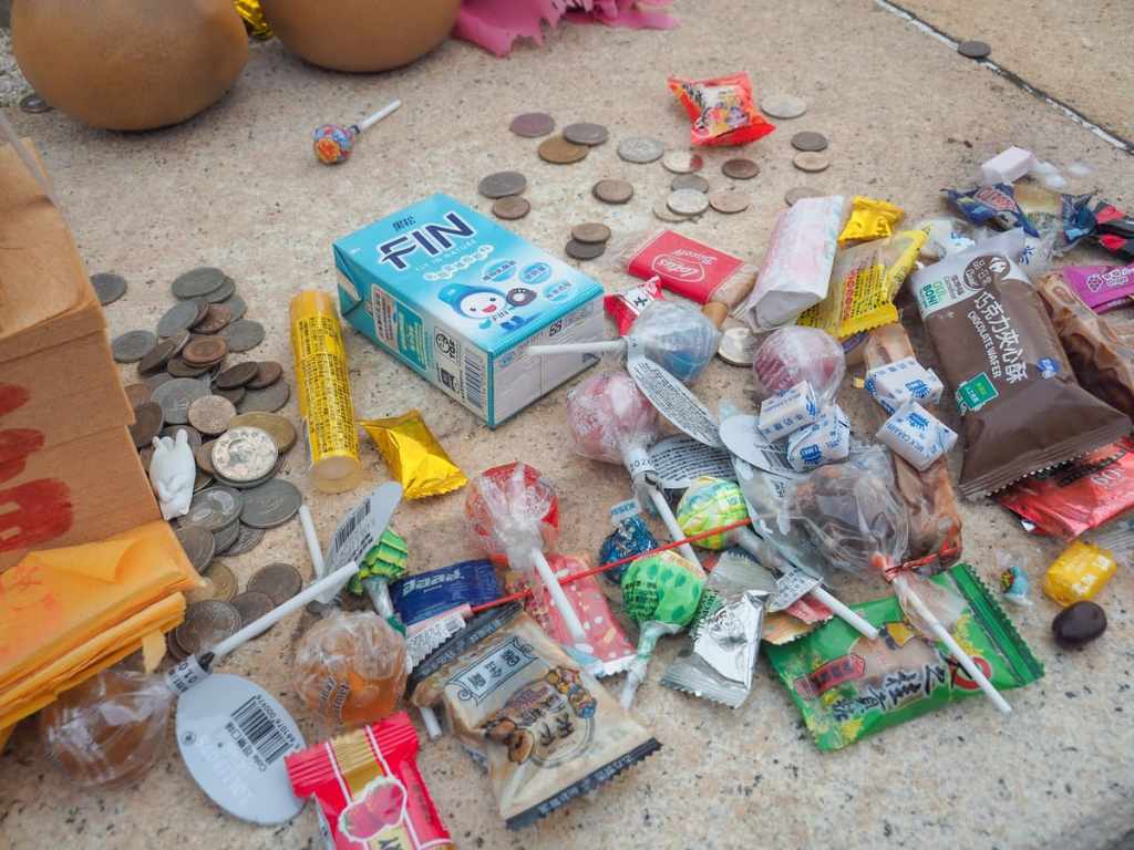 This one had a massive bounty of offerings on its altar. It also has visible bullet wounds and is very close to an abandoned tank.
