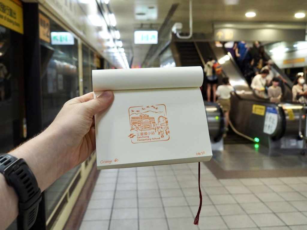 Sanhe Junior High School itself is absent from the station’s stamp. Instead, it depicts Yitian Temple (義天宮). This temple is one of the most dramatic looking in the area, with the upwards swoop of its eaves emphasized by its position above street level. In addition to looking cool, the temple has also earned a reputation for being a “cat temple” on account of all the strays that the temple staff have taken in. They’re so serious about it that they cats even have a page on the temple’s website.